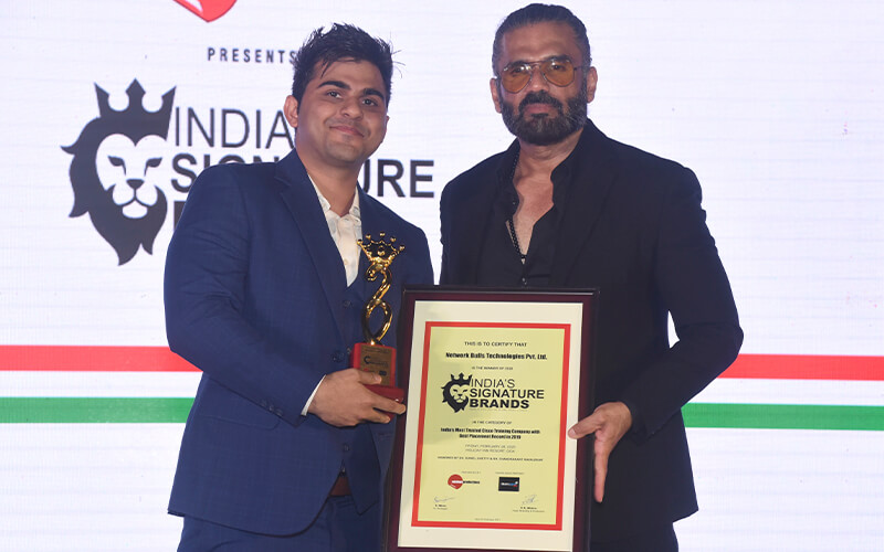 In India’s Signature Brand Award held in Goa, Mr. Paras Jairath received the award on behalf of Network Bulls from the megastar Mr. Sunil Shetty. He received an award for India’s Most Trusted CISCO training Company with the Best placement record in 2019.